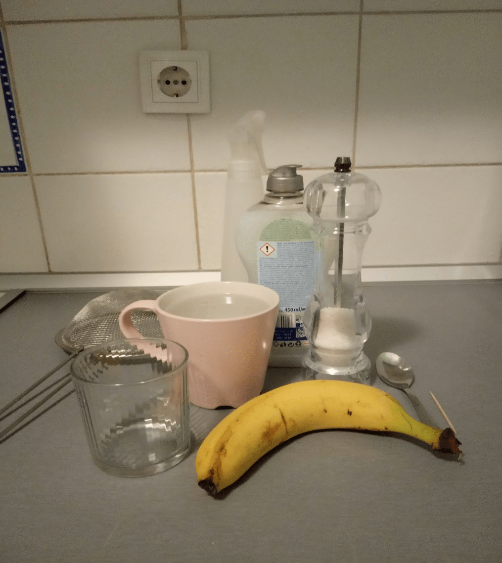 - 2 kašičice tečnosti za sudove ili tečnog sapuna za ruke