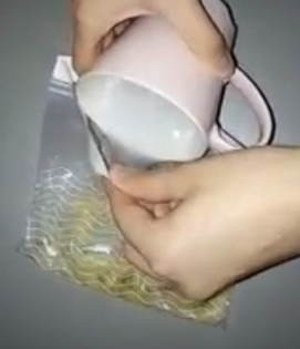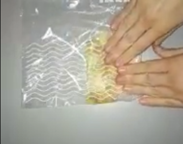 Korak 3: Sada presuti mešavinu u kesu sa bananom i to polako promešati, ukoliko mešanje bude previše grubo napraviće se mnogo mehuriča, pa će se izvući manje DNK