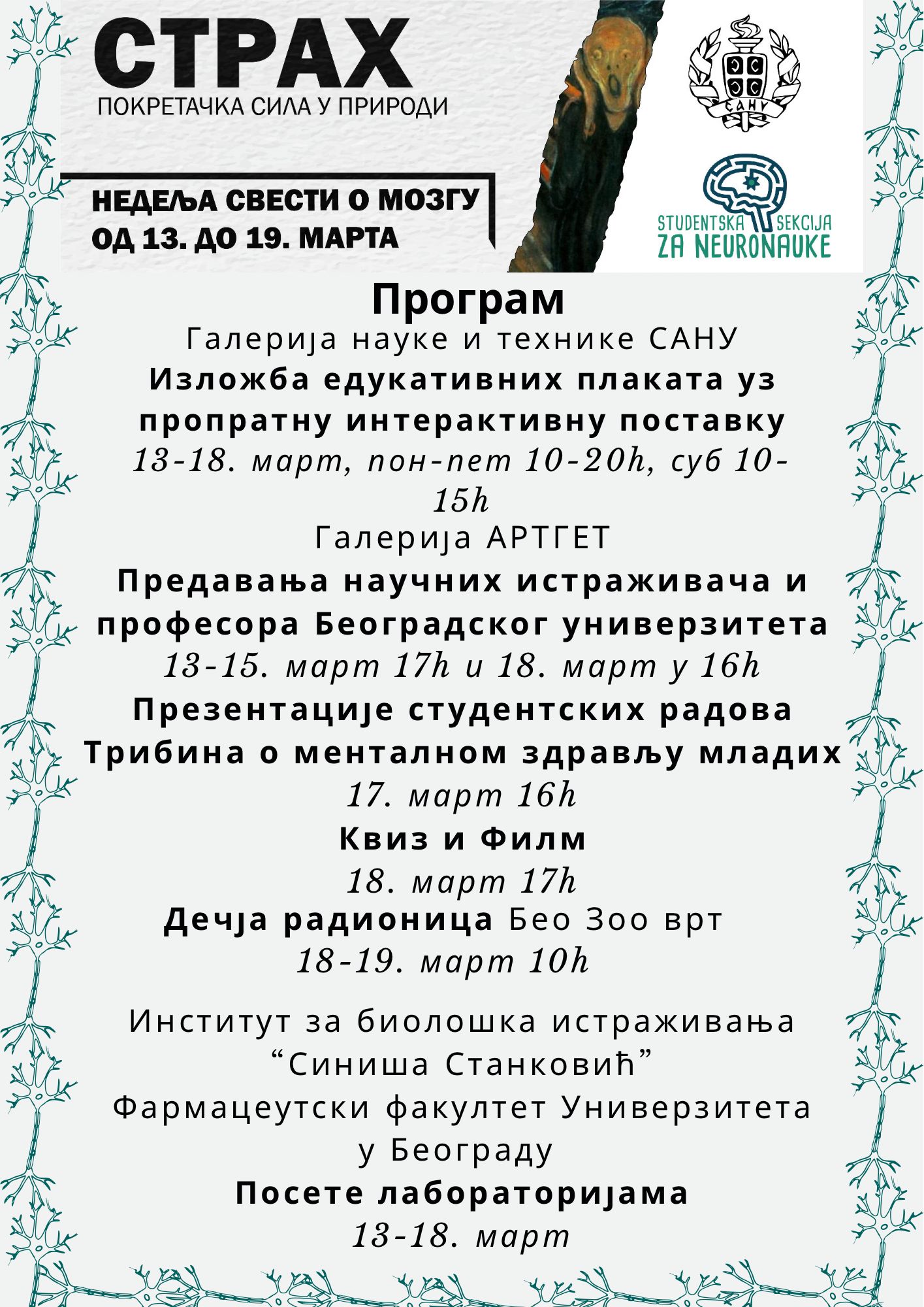 U prilogu se nalazi link i fotografija program dešavanja ovogodišnje Nedelje svesti o mozgu!