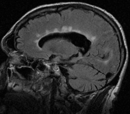 Pored samog neurološkog pregleda, da bi dijagnoza bila sigurna i tačna, potrebno je uraditi i magnetnu rezonancu mozga i kičmene moždine. Promene se vide kao hiperintensne zone demijelinizacije i ponekad se kod akutnih lezija može videti edem mozga u okolini lezije.Specifičan znak su Davsonovi prsti kao.