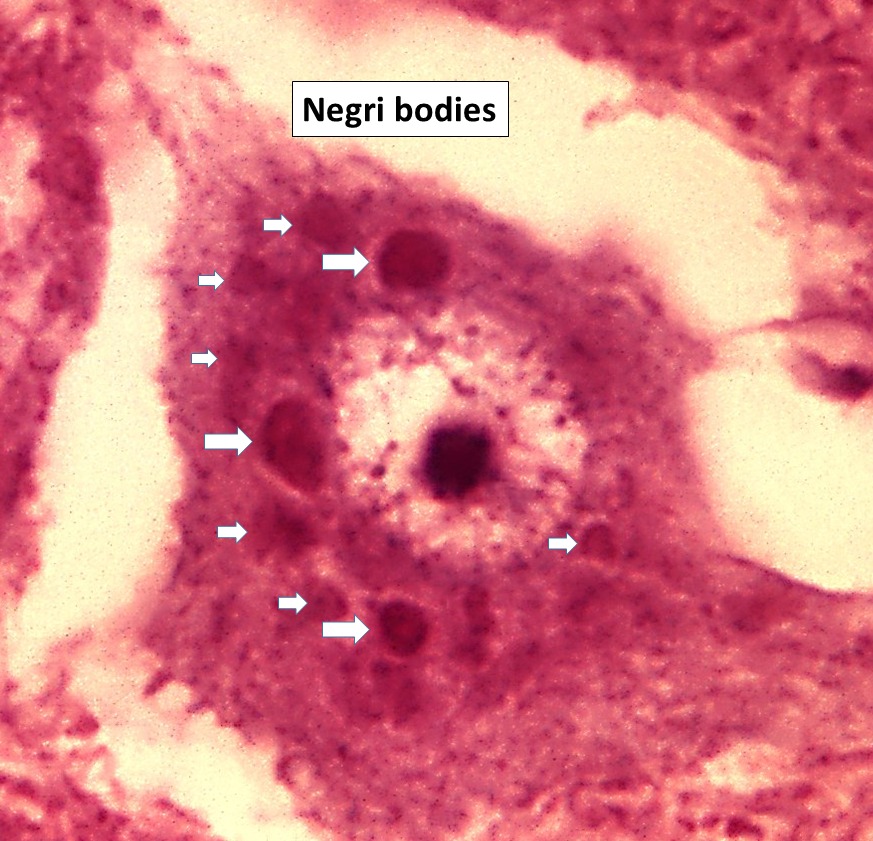 Virus besnila se najčešće prenosi ujedom životinje, pa biva unet preko kože u mišićno ili nervno tkivo. Ima afinitet za acetilholinske receptore neuromišićne spojnice, a zatim se nakon 2 dana od ugriza preko nervnih vlakana širi u CNS. U CNS-u ima afinitet za bazalne strukture mozga : hipokampus, limbički sistem, mali mozak i prednje segmente moždanog stabla. U neuronima se virus replicira i dovodi do degeneracije citoplazme, što se uočava kao Negrijeva inkluziona telašca. Nakon replikacije u neuronima, virus se može širiti putem senzornih nerava u pljuvačne žlezde, srce i krvne sudove. Sami simptomi besnila su posredovani imunskim odgovorom zaražene jedinke (paralitički oblik besnila je češći kod imunokompromitovanih jedinki). Sam soj RABV ne utiče na klinički oblik infekcije, jer postoji slučaj gde je isti pas doveo do furioznog oblika kod jedne, a do paralitičkog oblika kod druge osobe.